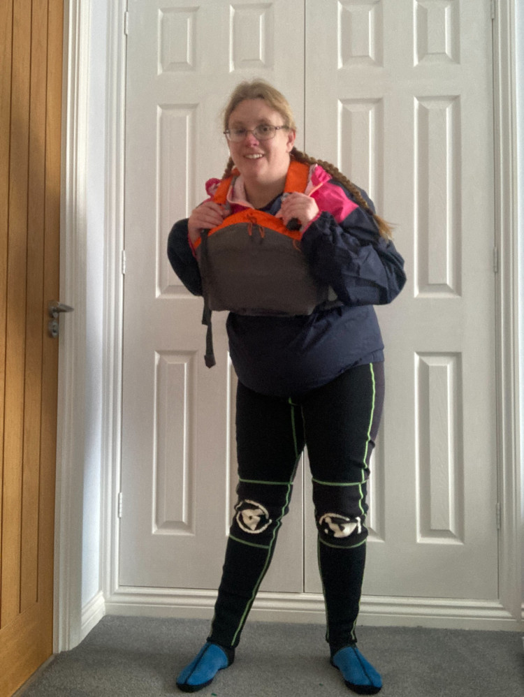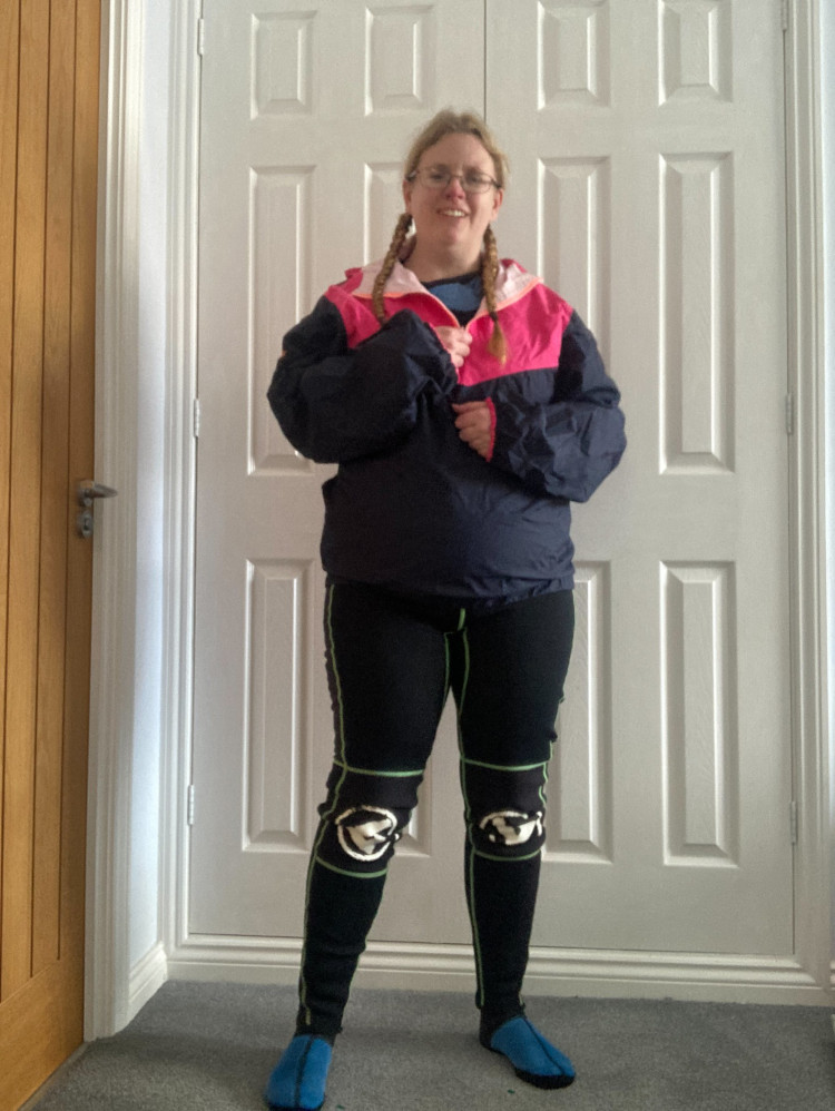 From now on, live-ish blogs from the 2024 season of boat club will come alongside recounting my paddle history. Next week we’ve got our start-of-season pool session, so I’ll do a blog about that, and then it’ll depend how often there’s something blog-worthy. So, for the sake of being topical rather than mining my last ten years of on-off paddling, I thought I’d do a post about what I wear kayaking. I have three sub-sections here: what I usually wear, what I wear in hot weather and other stuff that I don’t necessarily wear much. This is just my personal kit – it doesn’t include my own safety & emergency stuff or boat club group kit.