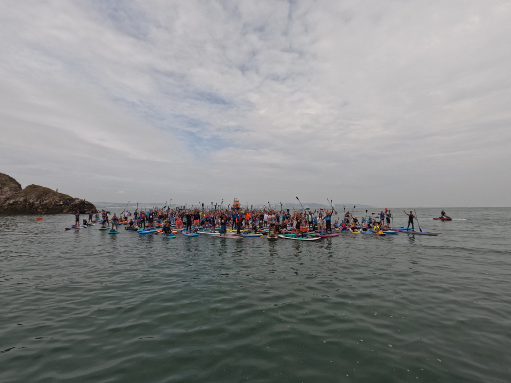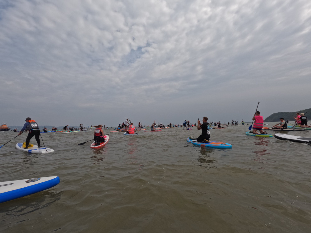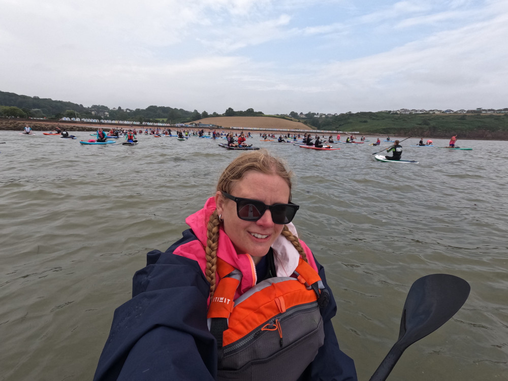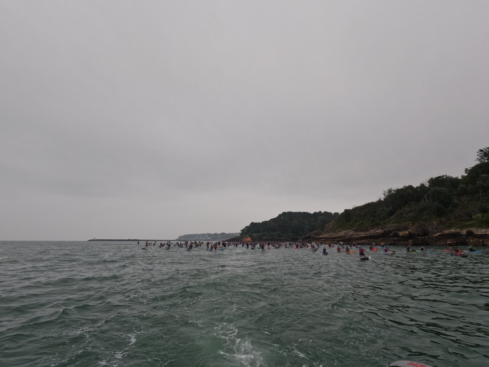 We were the last stop on the Great Big Paddle Parade. I’d had the sense to do the shortest trip. It’s only 2.5km. I can manage that! It was still windier than I like and it meant the parade was moving south far quicker than planned. They were due to reach us at 11.30am but they were at the previous beach really early. Team Broadsands started preparing us to be on the water and ready to join by 11. The parade paused at Goodrington to let the clock catch up with them and then they were going to set off at their allocated time off 11, so actually, we didn’t need to be on the water quite so early.