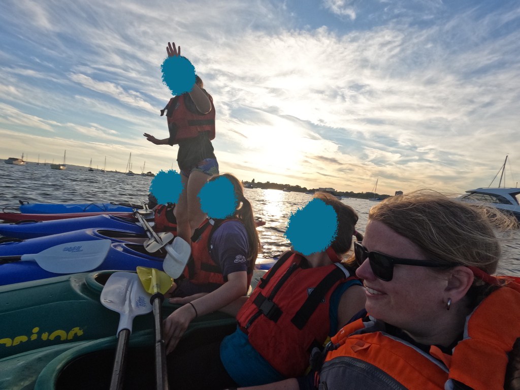 Honestly, as a beginner that’s about all you really need. As a kayaker, I like to wear a wetsuit over a swimsuit but our girls come to the boathouse in old t-shirts and leggings, and paddleboarders seem to wear anything from bikinis up to tracksuits – it depends on how likely you are to end up in the water, the weather, how comfortable you are and so on. But as a beginner, someone who’s not quite ready to drop half your annual salary on kit in one go, someone who doesn’t know whether paddling is something you’re doing to love or not, something for your feet and something for your glasses are a good start and a buoyancy aid will never be a bad decision.