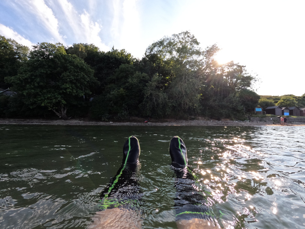 I think the first and possibly most important thing is to buy something to protect your feet. A pair of old trainers might be good enough or you might want to invest in a pair of neoprene beach shoes or surfing booties. Personally, I still haven’t figured out exactly what I like – I have a pair of neoprene socks from my caving days which work great on the water but are really bad on the shore when I feel every single stone and pebble right through my feet. Something with soles might be good.