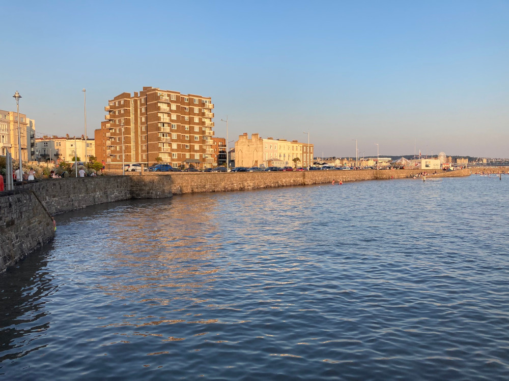 All went fine at first. I paddled around and then it began to dawn on me that the water level was rising. It began to touch the concrete walkway – I think they call it the apron? – around the edge of the pool and I realised it was time to gather my stuff and flee. I didn’t get changed, I just picked up my bag and scampered up the steps to the prom that runs along the top and I got changed there. And I kept watching the water. Within ten minutes, it had risen so high that it was thigh-deep on a man walking around the walkway. Within another five, it was halfway up the steps. I looked across to the wall which had now vanished under the incoming high tide. It has a rope fence along the top so you can walk across it and the fence was just about visible but the wall itself was gone. I’ve heard that Weston-super-Mare has some of the highest tides in the country and I can well believe it.