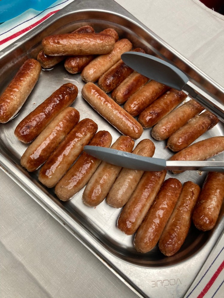Butterfly outdid herself with the sausages. To be fair, we were told there were going to be fourteen girls and four leaders, so she catered for 18 and in the end, there were only 9 girls and 2 leaders, but we do prefer to over-cater rather than under and besides, we’re limited by the size of the packs of sausages. We don’t have much of a kitchen in the boathouse but we have a little tabletop oven, which looks like a microwave with a shelf and a clear glass door. I remember cooking hot dogs on the hot plates on top of it when I was a Young Leader. Anyway, there were more sausages than two or three Guide units could eat. We had rolls and ketchup, we’d produced a lot of plastic cups and jugs of squash, laid out neat rows of crisps by flavour, there were chocolate biscuits for afterwards and there was tomato and cucumber as a nod towards being healthy. To be fair, Guides usually love that sort of finger food. But eleven Guides couldn’t finish off that many sausages or quite finish the vegetables either. Besides, after all their running around and eating marshmallows and playing circus toys, we were running out of time. We were coaxing them to take the chocolate with them to eat on the way home even as their leaders were trying to bundle them out of the door.