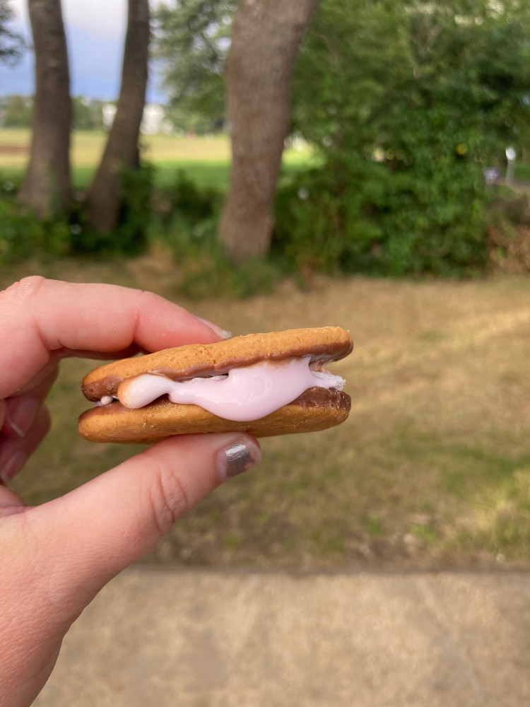 The trouble with gooey perfection is that it’s messy. Entire globs of mixed molten marshmallow and chocolate kept falling out of the biscuit as I tried to eat it and by the time I was done, I absolutely needed to go and wash both my hands and my face. I have never been so sticky in my life. I can only manage one marshmallow per campfire but Guides have a good appetite for burnt sugar so they got through two or even three each before they’d had enough.